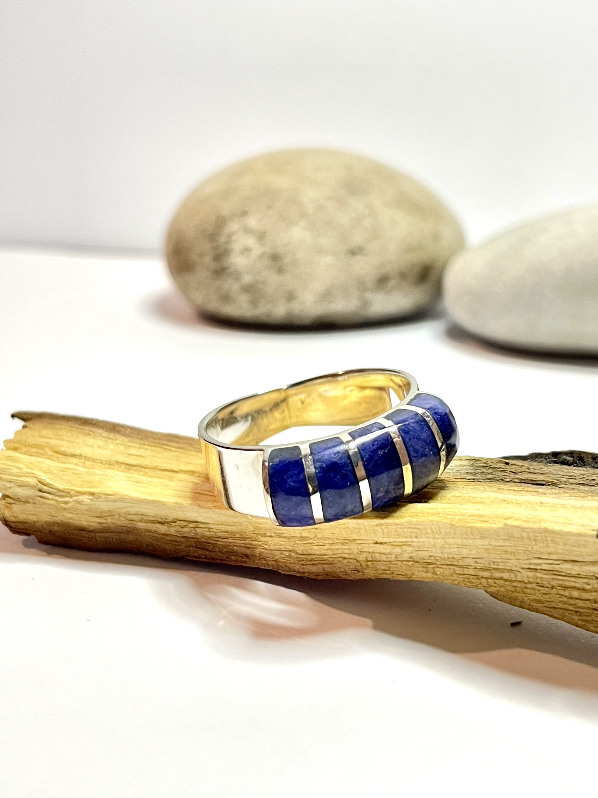Sortija con 05 piedras azules Lapizlázuli en plata 950. Disponible en Talla 23