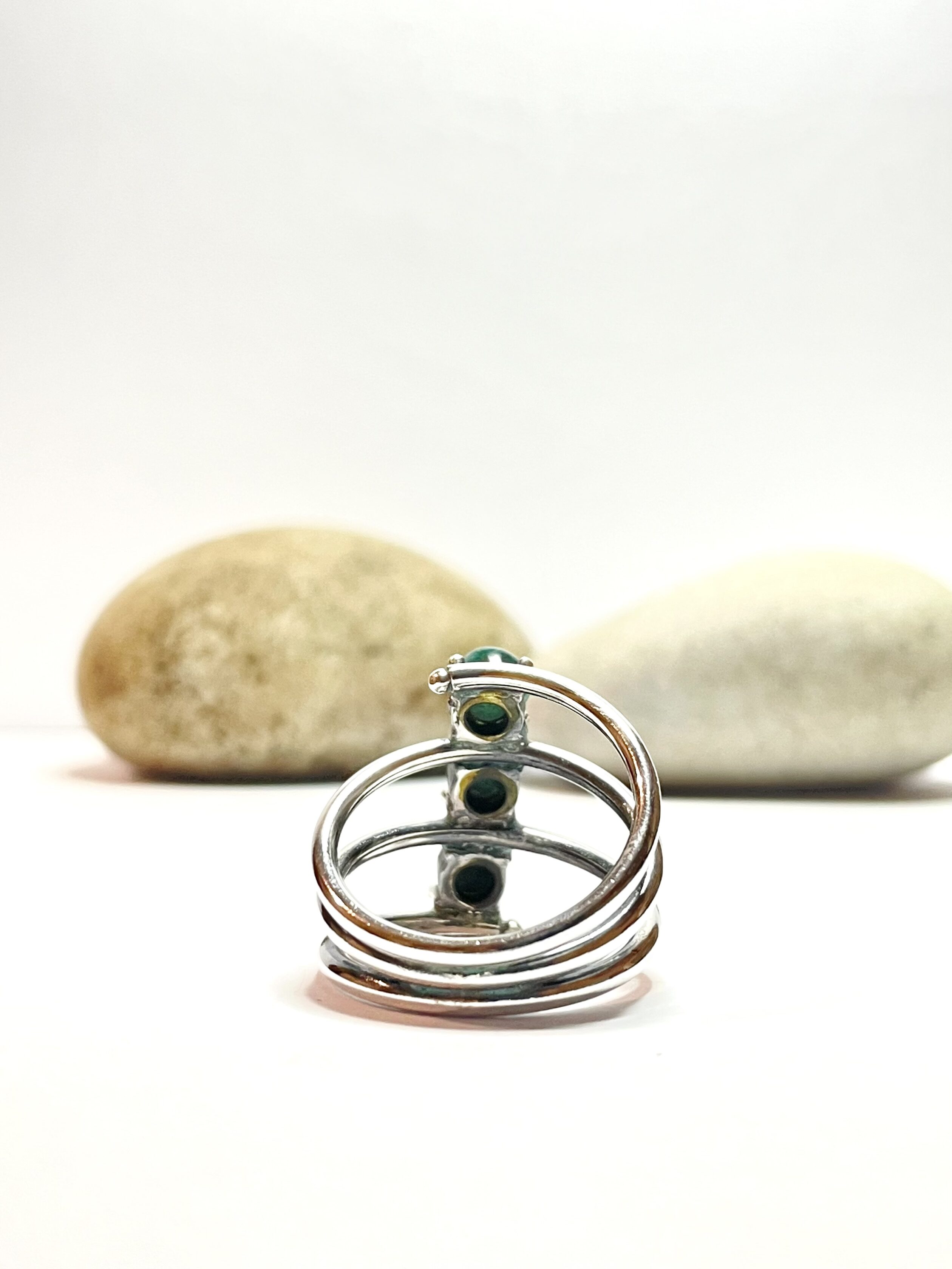 Sortija Trío Serenidad con 03 piedras Amazonitas en Plata 950. Disponible en Talla 12