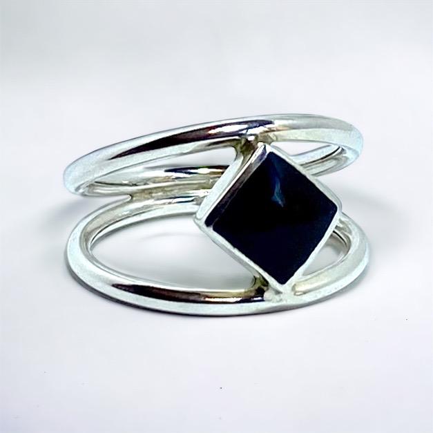 Sortija Viento Otoñal con 01 piedra negra Onix en Plata 950. Disponible en Talla 16