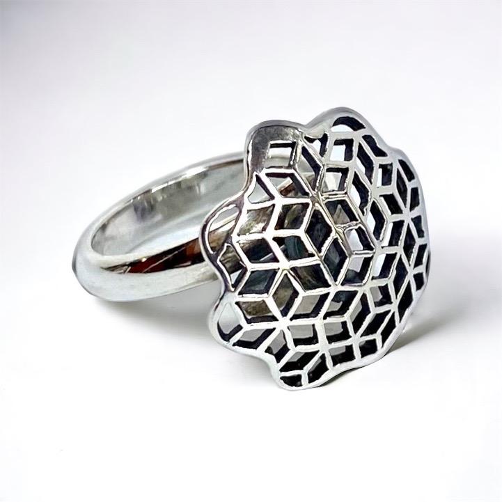 Hermosa Sortija Wayta, graduable con Flor y petalos labrados en Plata 950. Disponible en talla 13 y 14. Tamaño grande y chico